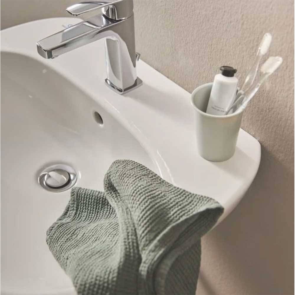 Lavabo dotato di foro centrale aperto per la rubinetteria. Può essere installato in abbinamento alla semicolonna o al sifone lineare. Articolo disponibile fino ad esaurimento scorte.