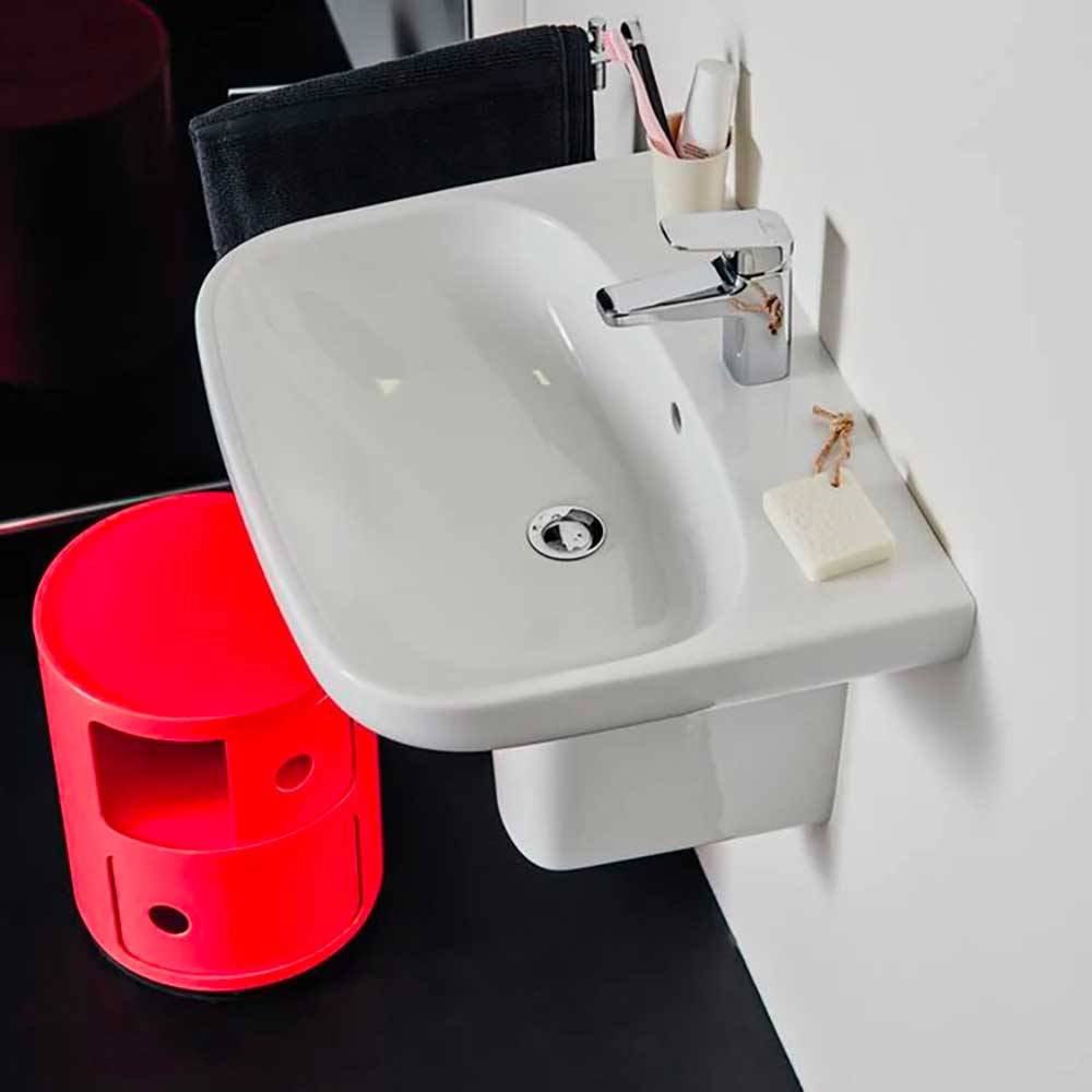 Lavabo con foro centrale per la rubinetteria aperto e foro del troppopieno. Possibile da abbinare con la colonna 1325202 o alla semicolonna 1325402