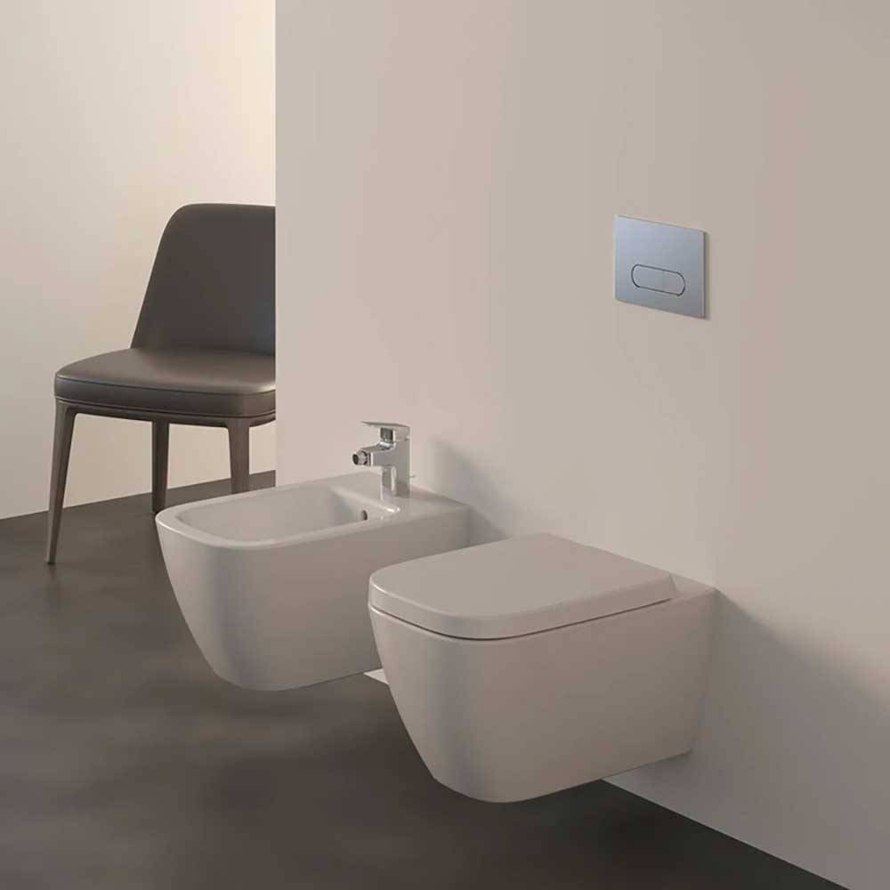 Vaso sospeso Rimfree con fissaggi completamente nascosti con scarico a parete. Da completare con sedile avvolgente a chiusura normale 1327802 oppure rallentata 1327804. Per il fissaggio a parete è necessario utilizzare l'innovativo sistema di fissaggio nascosto EasyFix+ a corredo del prodotto. Dotato della tecnologica di scarico Rimfree che garantisce un'ottimale pulizia del bacino ad ogni risciacquo e una facile pulizia grazie all'assenza di recessi. Certificato per lo scarico a 4.5/3 litri.