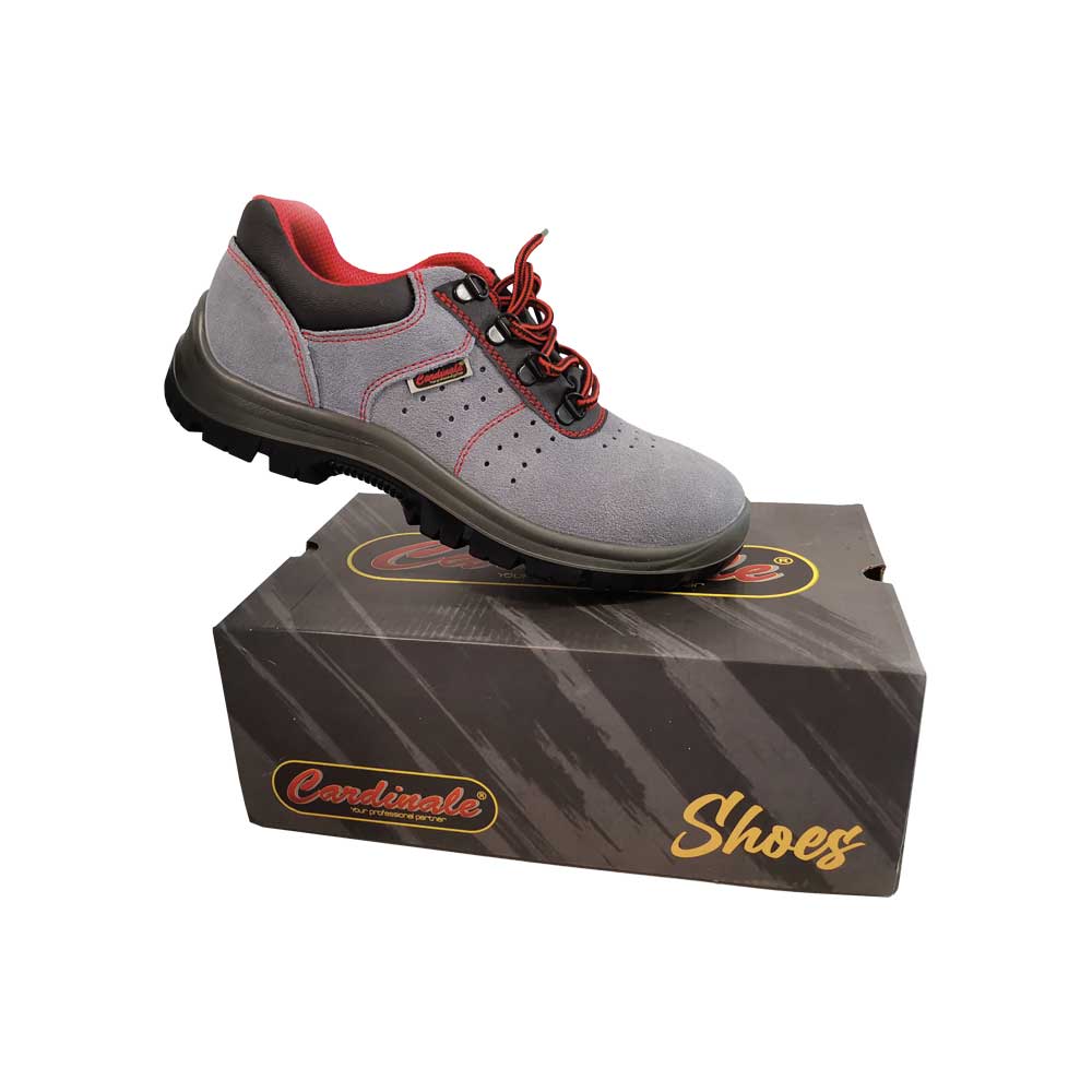 Tomaia in pelle scamosciata forata. Fodera in tessuto traspirante. Suola in polieretano bidensità, antishock, antiolio, antiacido ed antiscivolo. Soletta antisudore antistatica. Puntale in acciaio con resistenza fino a 200 Joule. Lamina in acciaio.