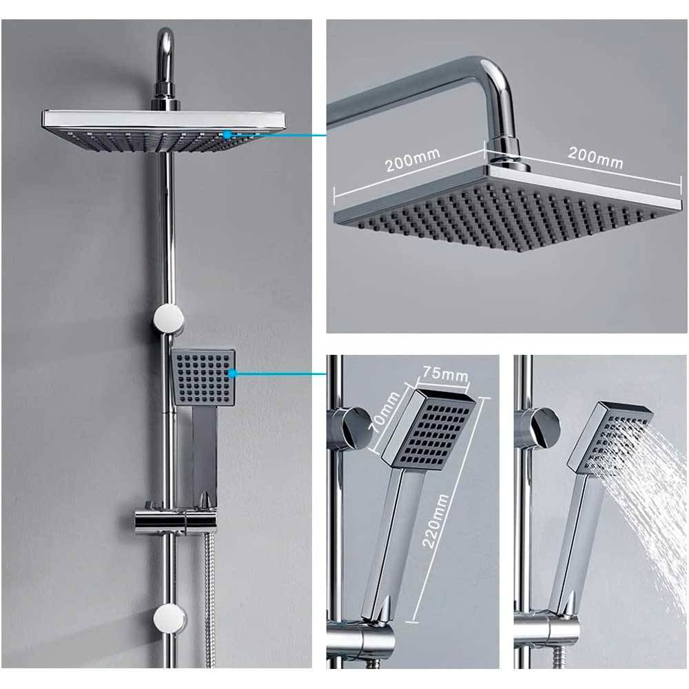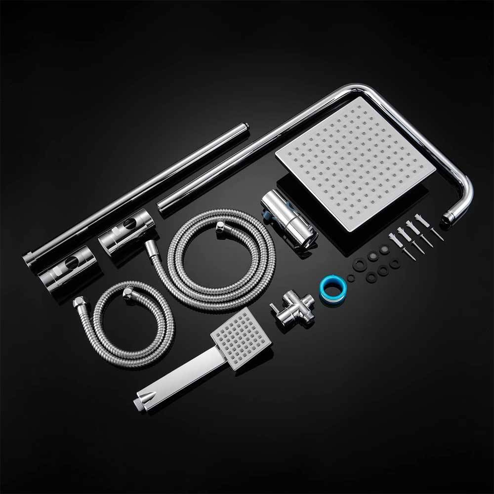 - Asta in acciaio Ø 22 mm; - Altezza 100 cm; - Accessori in ABS cromati; - Doccetta in ABS 1 getto cromata. - Deviatore: 1/2"M + 1/2"M + 1/2"M. - Soffione in ABS cromato 20x20 cm monogetto