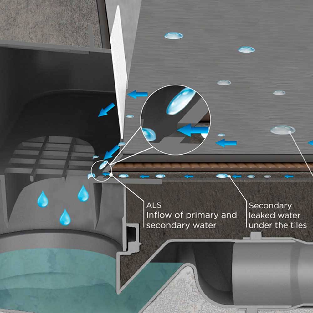 Altezza minima di installazione 56 mm. Profondità di installazione supporto griglia totale 82 mm/102 mm. Portata massima 48 lt/min. Supporto altezza griglia 94 mm/ 74 mm. Base di rotazione 360°. Materiale griglia Acciaio Inox AISI 304. Altezza tenuta acqua 25 mm. Spessore massimo della ceramica tra supporto griglia orizzontale e griglia verticale (i numeri descrivono l'altezza di costruzione, senza colla per ceramica) 14 mm/13 mm.
