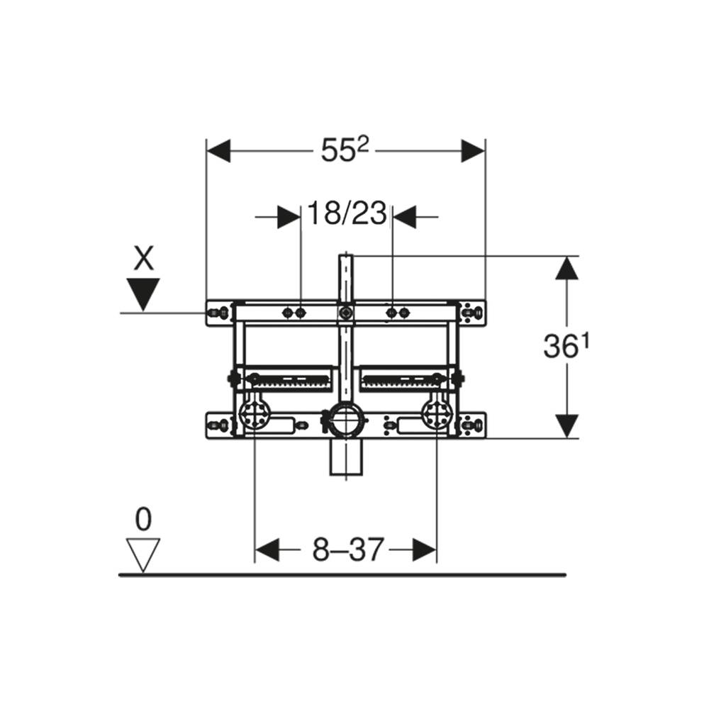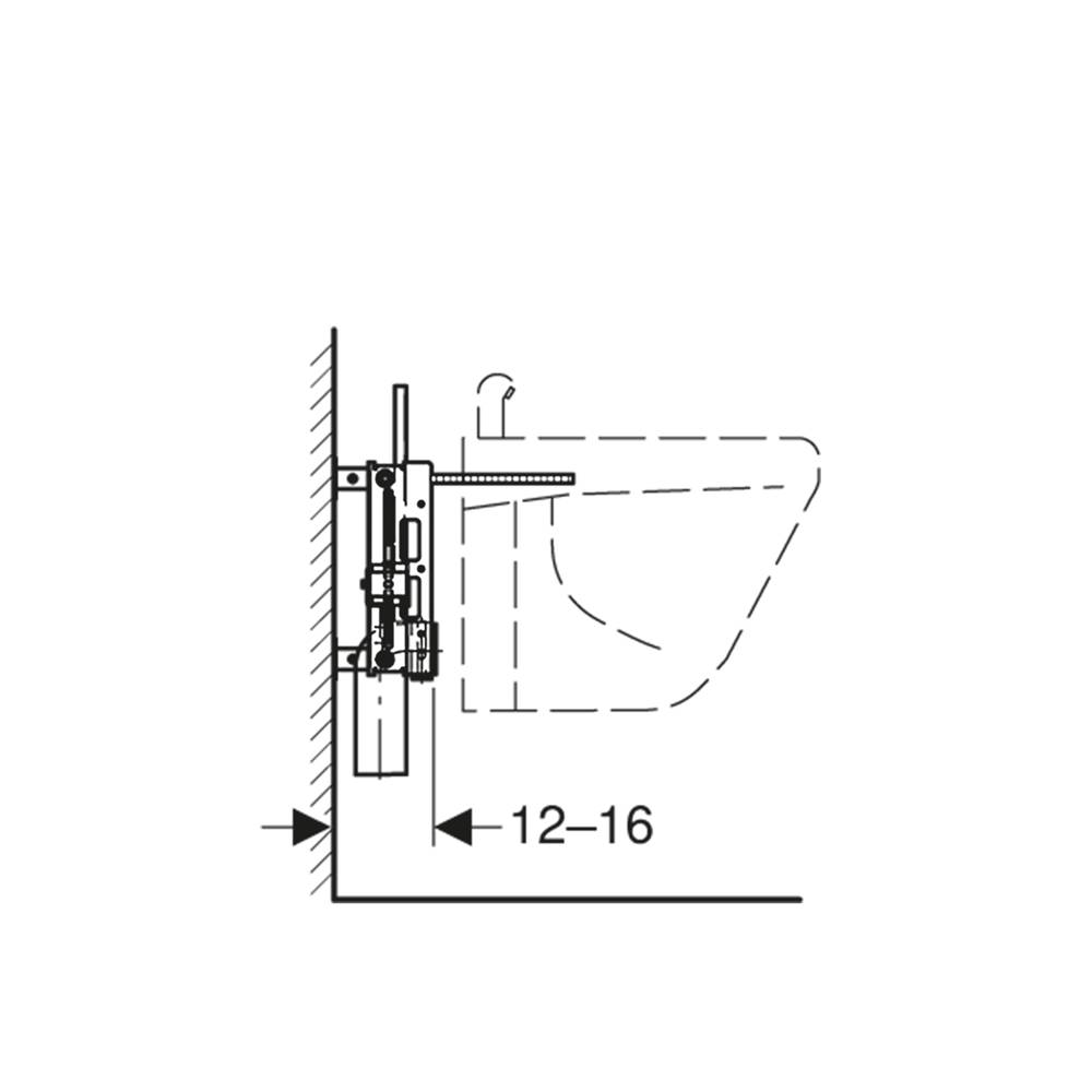 Per pareti in muratura, con curva tecnica in PE-HD 50 mm. Telaio di montaggio zincato. Telaio di montaggio rivestito con quattro flange di fissaggio. Profondità di montaggio regolabile, 12-16 cm. Distanza dei fissaggi bidet sospeso 18 cm o 23 cm. Fissaggio del bidet regolabile in altezza. Fissaggio per curva tecnica regolabile in altezza e isolato acusticamente. Fissaggi del rubinetto regolabile in larghezza e in altezza.