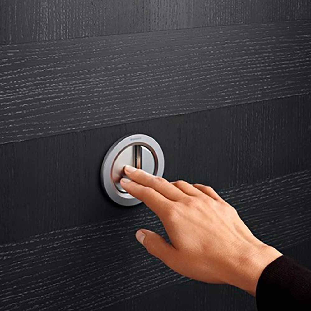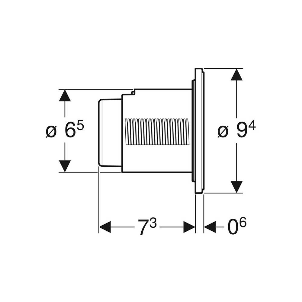 Tipo 01 - Ø 95 mm. Per il comando pneumatico a distanza di cassette di risciacquo da incasso Geberit SIGMA 8 cm. Risciacquo a due quantità. Adatta per costruzioni in muratura e costruzioni leggere in cartongesso. Installazione incassata. Da utilizzare in combinazione con placca di copertura cieca Art. 50122. Fornita completa di: Pulsante, sollevatore pneumatico, Tubo flessibile pneumatico 2 metri, tubo fodera 1,7 metri, scatola da incasso con protezione e materiale per il fissaggio. Compatibile solamente con cassetta incasso Geberit SIGMA 8 (UP720).