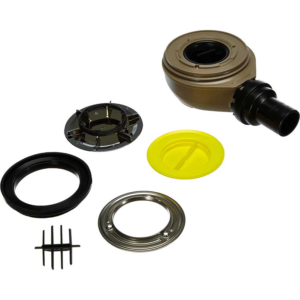 Per piatti doccia con foro piletta da Ø90. Chiusura idraulica 50 mm. Sifone orientabile. Controllo qualità secondo EN 274-3. Tubo ad immersione smontabile. Bicchiere del sifone smontabile. Fornito completo di: Tappo per piletta, Sifone, Inserto a Pettine e Materiale di Fissaggio.