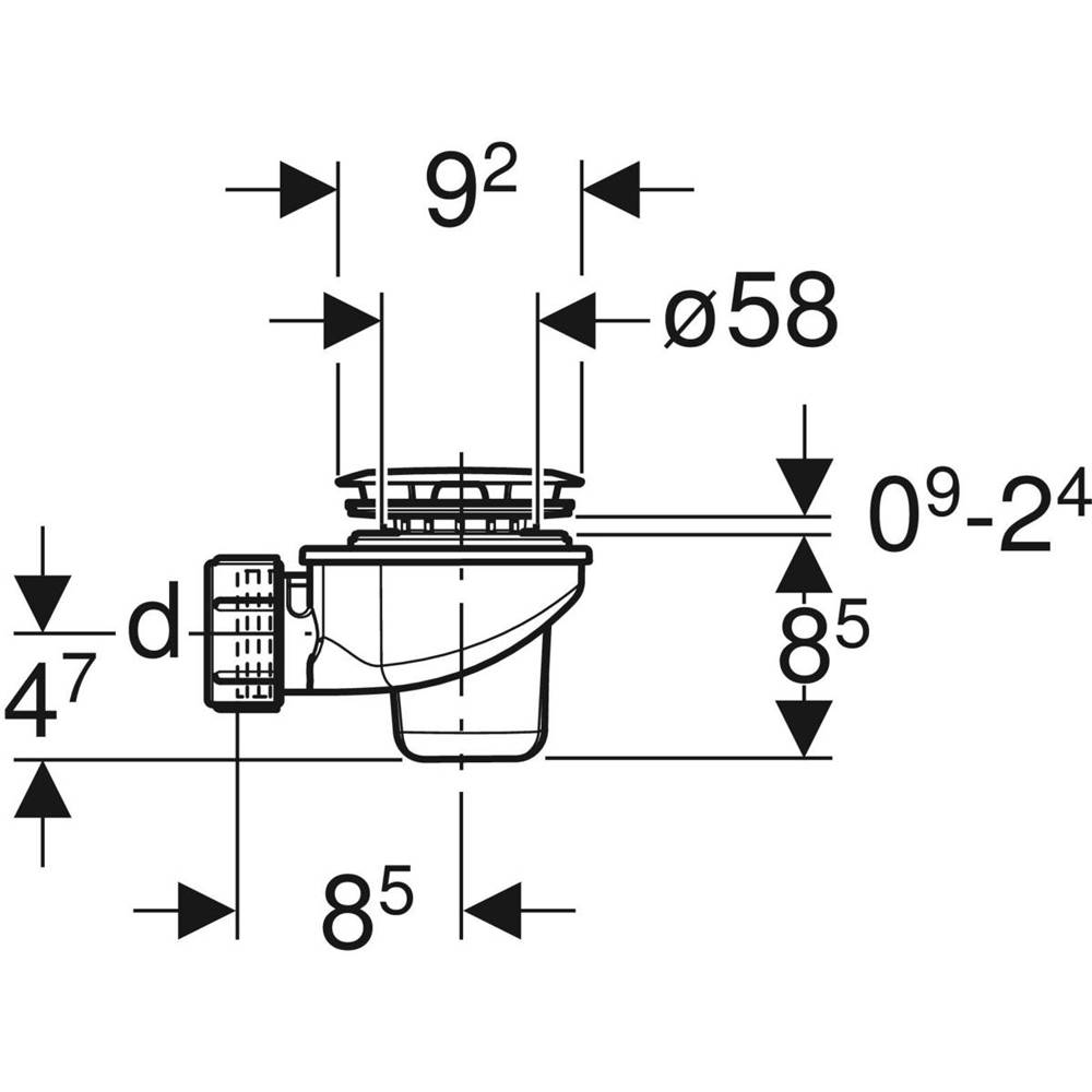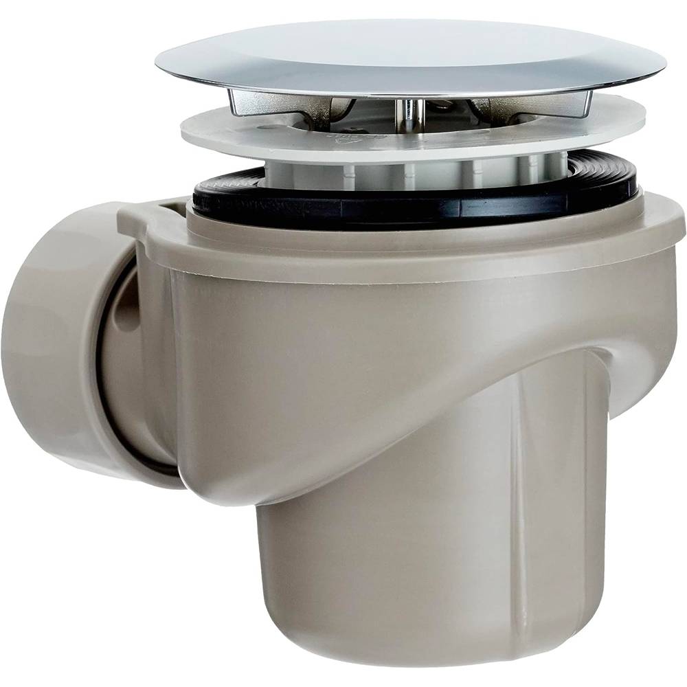 Per piatti doccia con foro per la piletta da Ø 62 mm. Chiusura idraulica 50 mm. Con tubo ad immersione smontabile. Fornito completo di: Piletta di scarico, Sifone, Bocchettone Ø 40 mm, accessori di completamento e materiale di fissaggio.