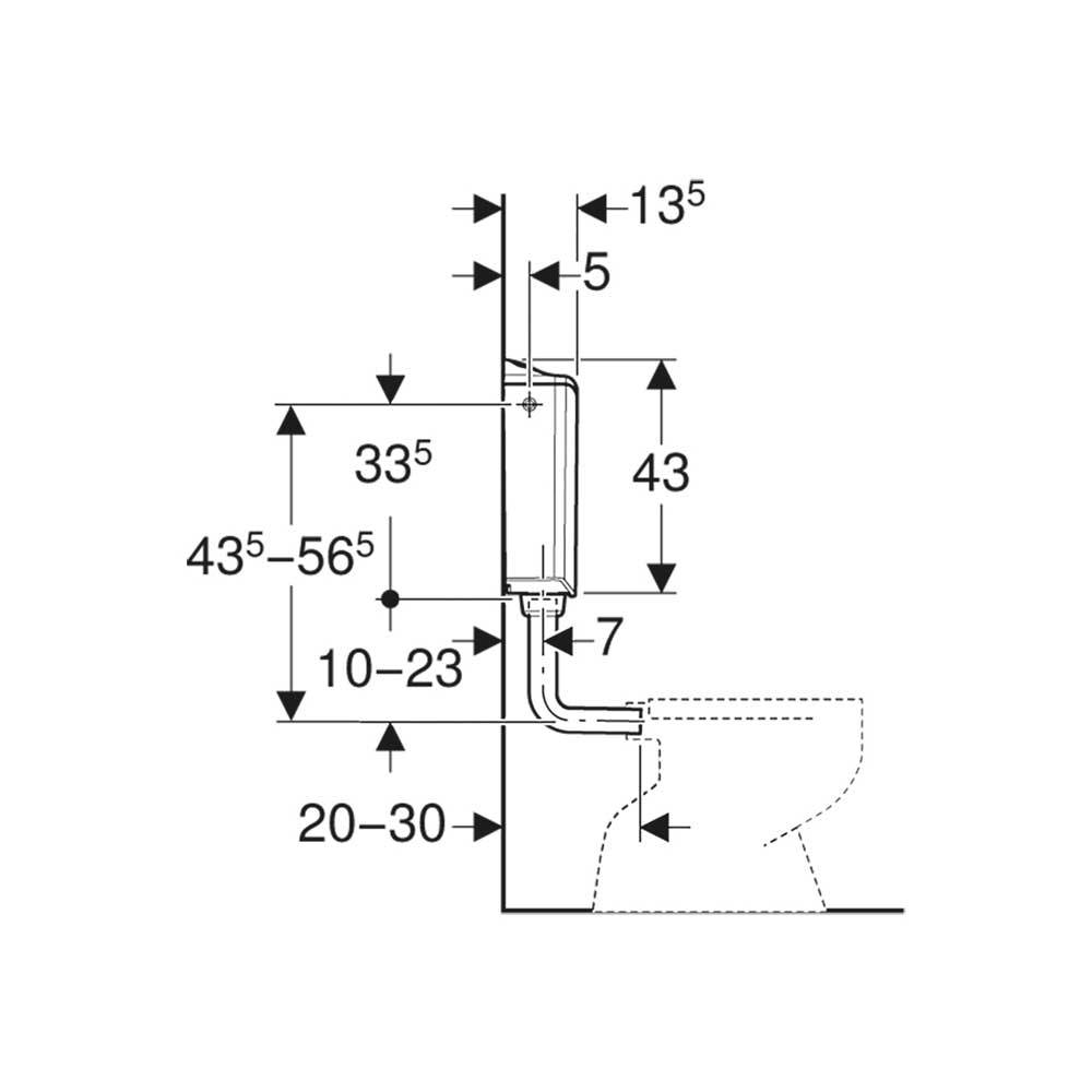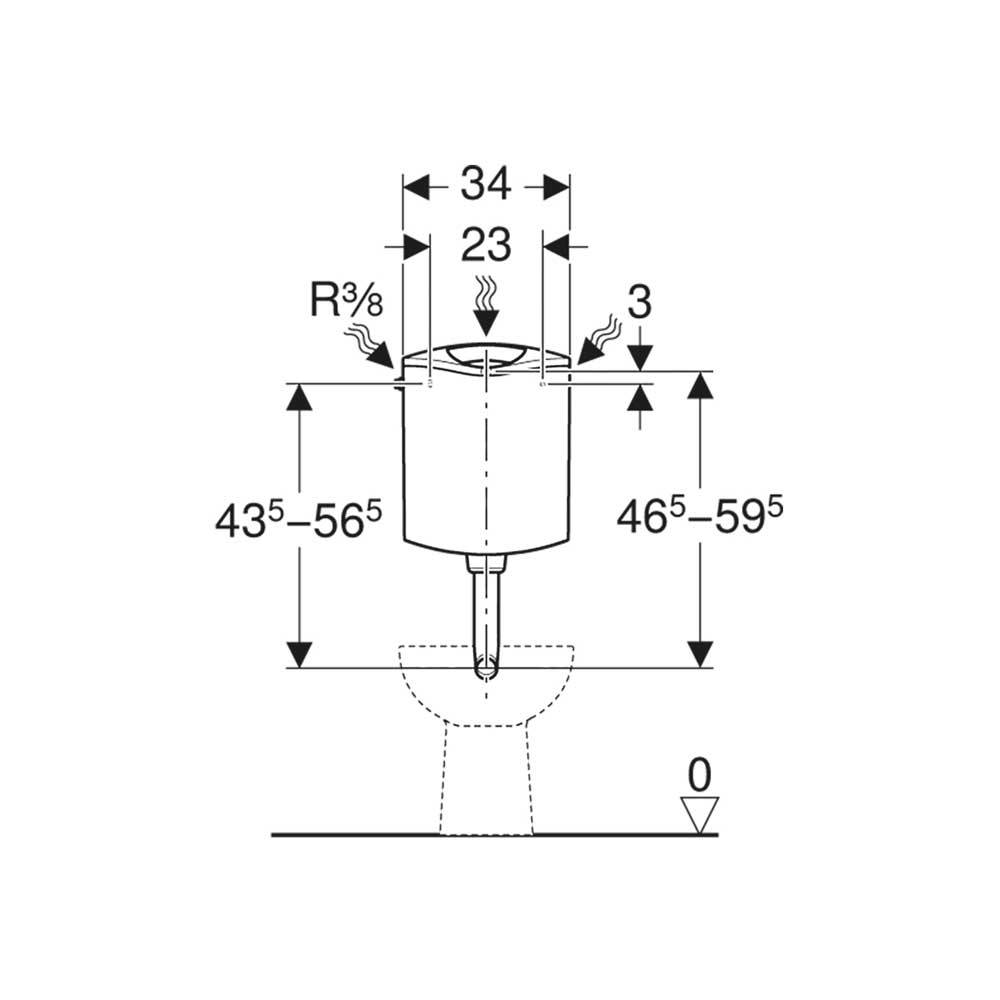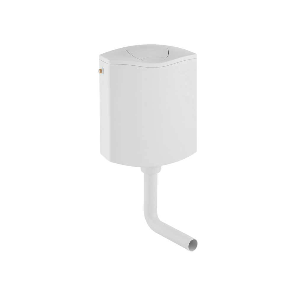 Con rivestimento interno. Completa di rubinetto d'arresto. Doppio tasto e quantità regolabili. Allacciamento idrico laterale o posteriore al centro. Fornito completo di: - Rubinetto d'arresto 3/8", - Tubo in rame curvato - Curva di risciacquo 90° in ABS, D. 50/44 mm, 23 x 23 cm. - Morsetto in EPDM D.44/55 mm. - Materiale di Fissaggio.