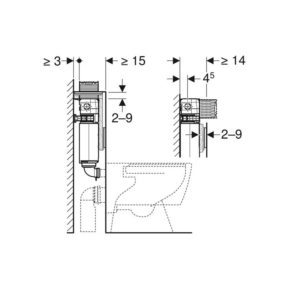 Per pareti in muratura. Per il montaggio in installazioni applicate davanti alla parete ad altezza parziale. Per WC a pavimento normale e filo muro. Per risciacquo a due quantità. Nota: PLACCHE Nostri Art. 50120 o 50155.