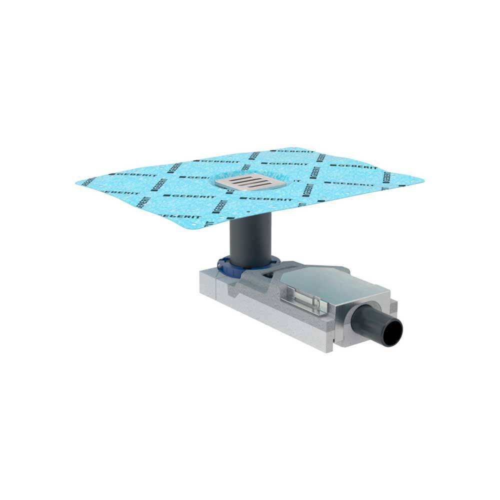 Per lo scarico di docce a filo pavimento. Idoneo per spessori delle piastrelle su pavimento di 2-30 mm. Foglio impermeabile premontato. Griglia regolabile in altezza, inclinazione e dissasamento. Corpo base in EPS per l'isolamento acustico e l'alloggiamento del sifone. Classe di resistenza K 3. Fornito completo di: Coperchio protezione cantiere con bordo rimovibile, sopralzo per letto sottile, inserto a pettine, griglia e portaglia con anello di compensazione, sifone e materiale di Fissaggio.