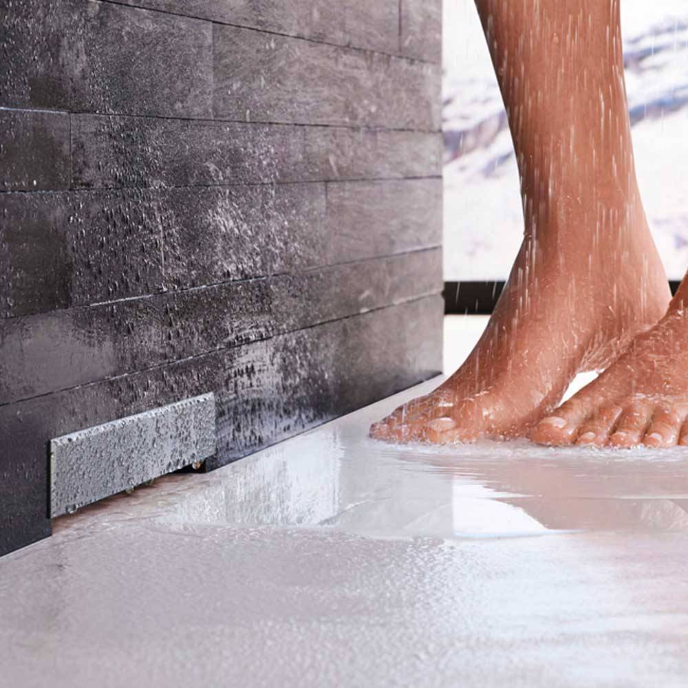 Per lo scarico di docce a Filo pavimento. Placca di copertura da ordinare separatamente nostro codice 50412. Spessore intonaco 5-30 mm. Idoneo per spessori delle piastrelle su pavimento 2-26 mm, e spessori delle piastrelle alla parete di 2-35 mm. Modulo regolabile in altezza. Allacciamento allo scarico laterale. Foglio impermeabile premontato.