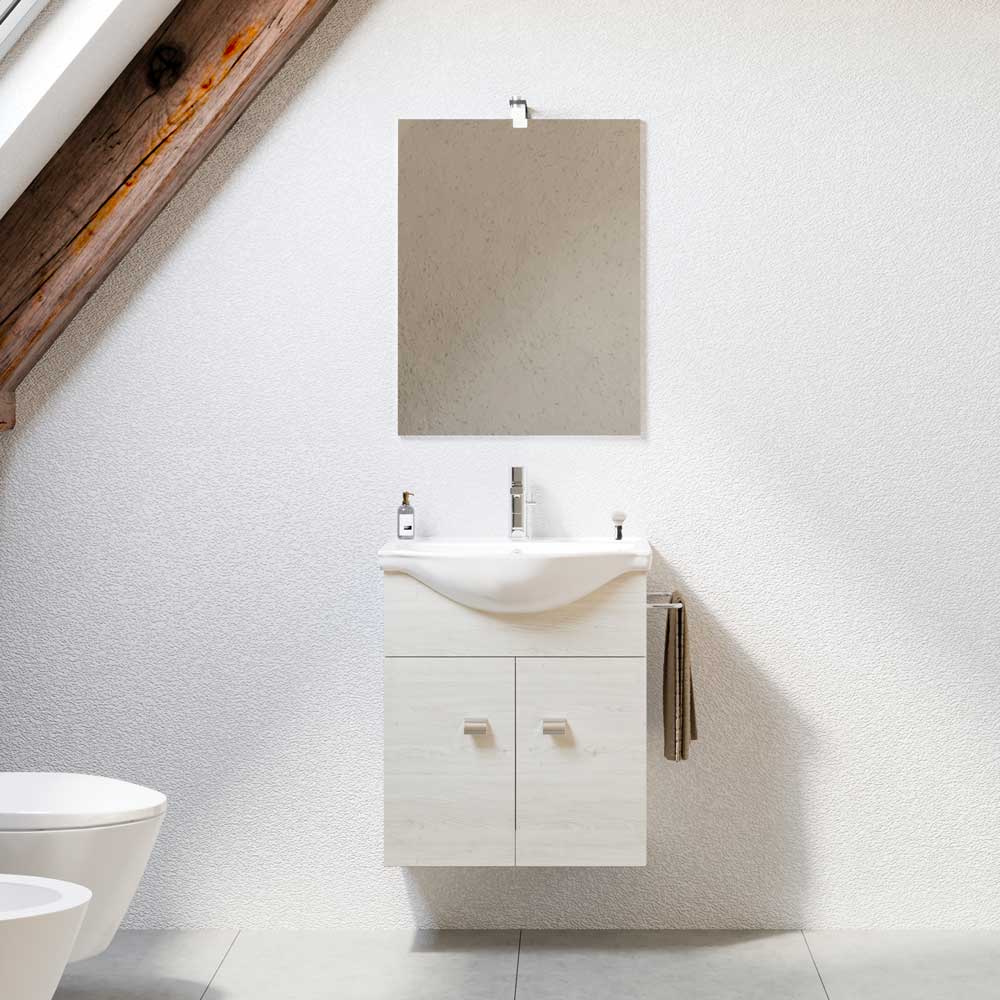 C004602 | COMPOSIZIONE MOBILE DA BAGNO SOSPESO "ZAFFIRO" ROVERE GHIACCIO 57 cm