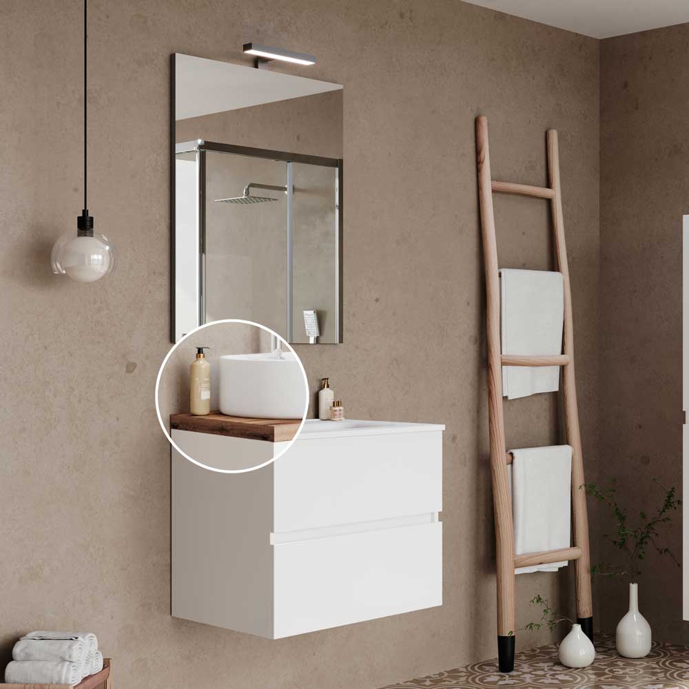 C006204 | COMPOSIZIONE MOBILE DA BAGNO SOSPESO "EASY60" BIANCO LUCIDO Con Mensolone Rovere Naturale "Giotto"