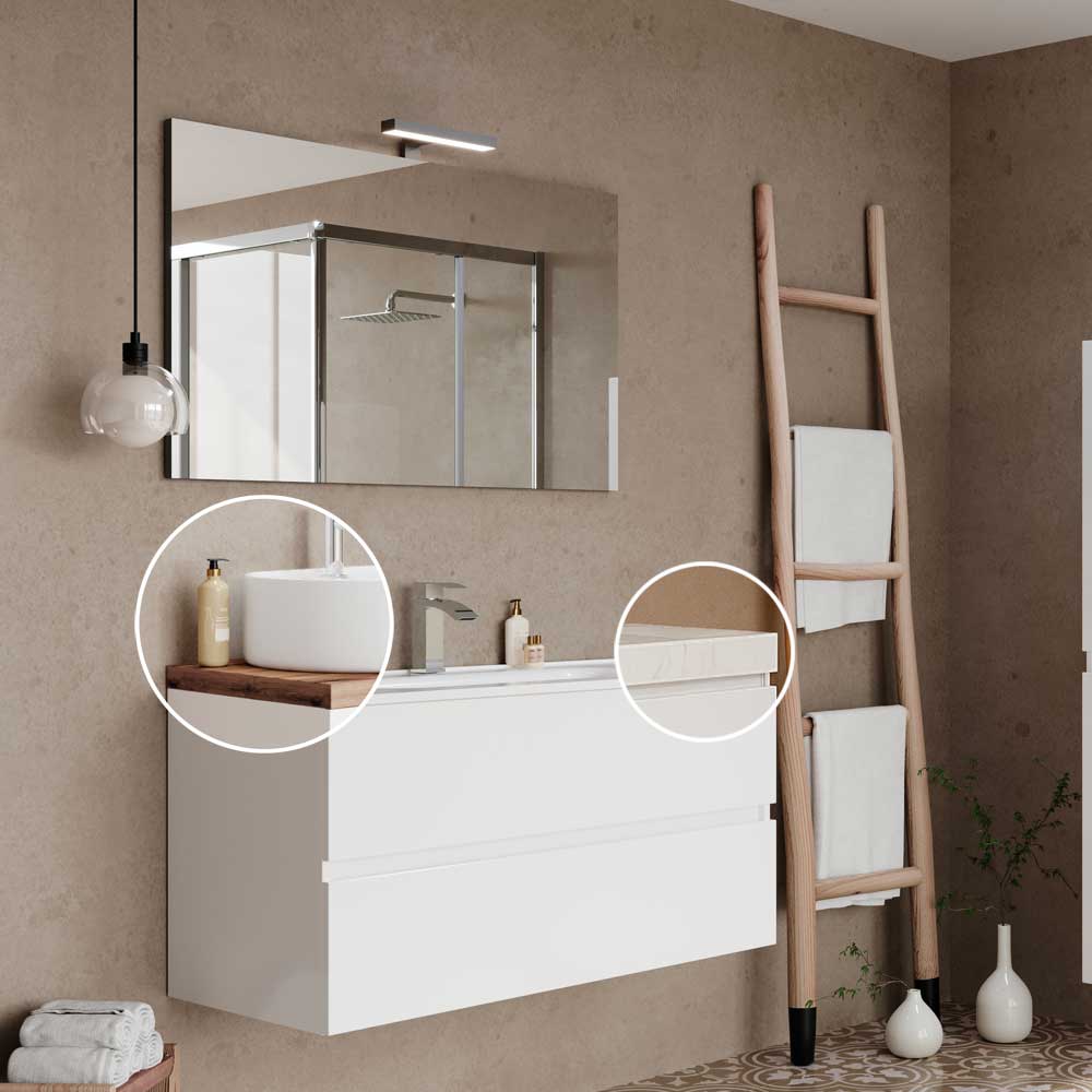 C006606 | COMPOSIZIONE MOBILE DA BAGNO SOSPESO "EASY100" BIANCO LUCIDO Con Mensolone Rovere Naturale "Giotto"